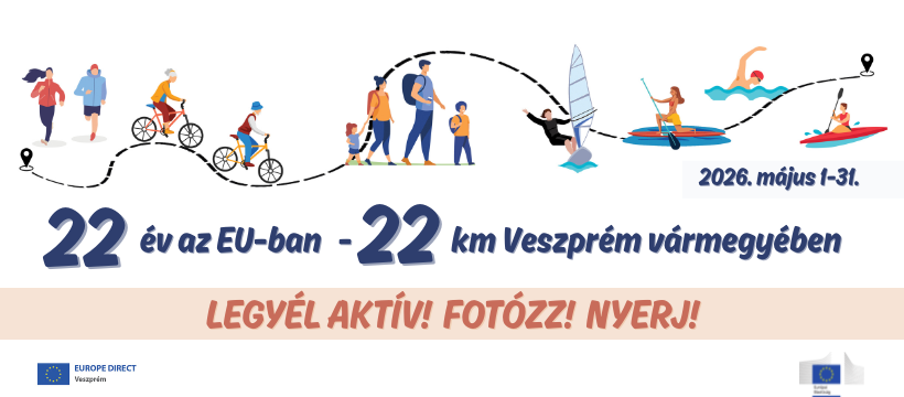 Magyarország európai uniós csatlakozásának 22 éves évfordulója alkalmából az Europe Direct Veszprém nyereményjátékot hirdet 2026. május 1-31. között, amelyben sportolásra is buzdítja a résztvevőket.