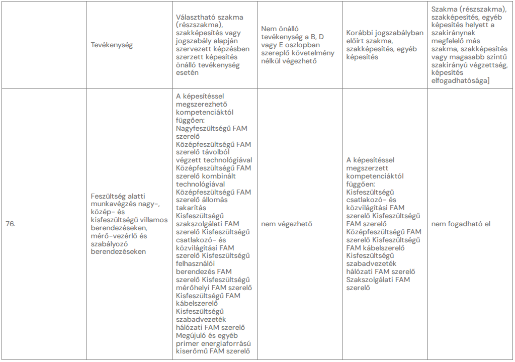 A 34/2021. (VII. 26.) ITM rendelet 1. mellékletében foglalt táblázat 76. sora helyébe a következő rendelkezés lép: