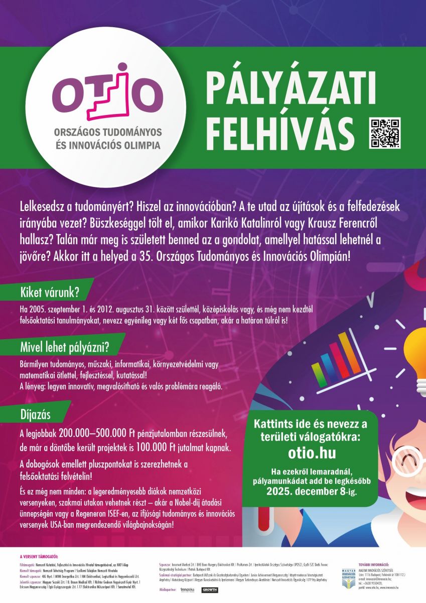 A 35. Országos Tudományos és Innovációs Olimpia (OTIO) pályázatot hirdet középiskolás diákok számára.