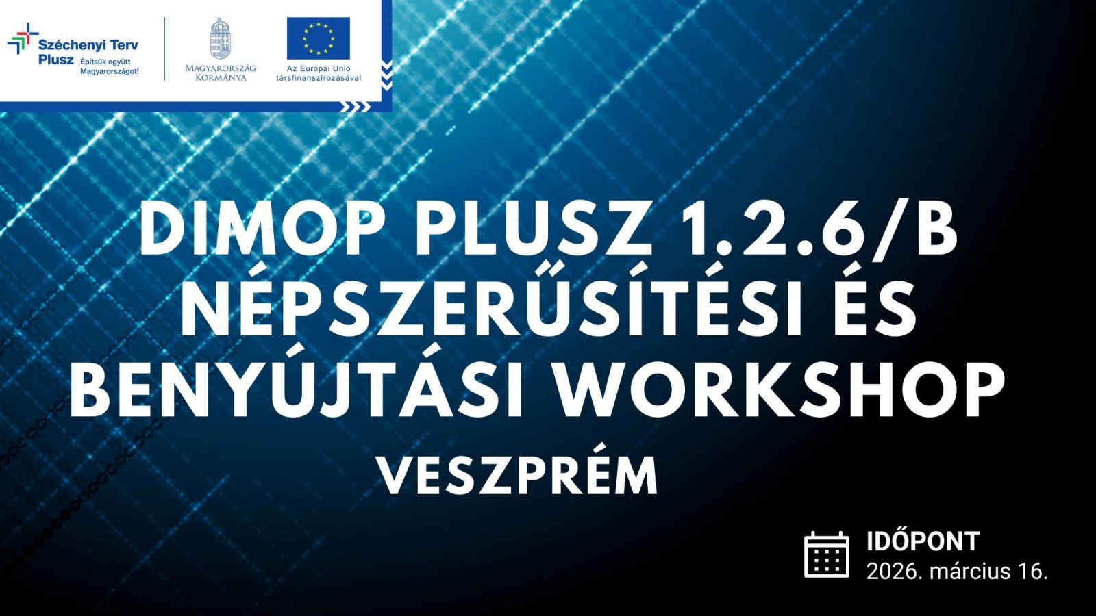 A Digitális Megújulás Operatív Program Plusz Irányító Hatósága népszerűsítési és benyújtási workshopot szervez Veszprémben a DIMOP 1.2.6/B-26 felhíváshoz kapcsolódóan.