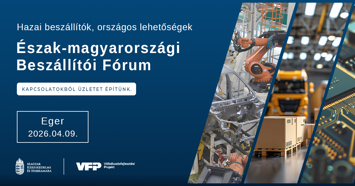 A Magyar Kereskedelmi és Iparkamara által támogatott Vállalkozásfejlesztési Program részeként a hazai kamarai hálózat idén tavasszal újabb Országos Kamarai Beszállítói Programot valósít meg. A 7 régiós rendezvényből álló programsorozat Észak-magyarországi beszállítói fóruma Egerben valósul meg 2026. április 9-én.