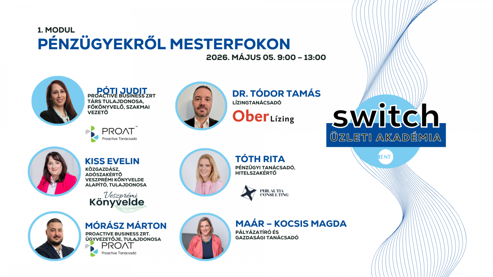 A BENT Szakmai Közösség szervezésében - a VKIK közreműködésével - megvalósuló SWITCH Üzleti Akadémia I. moduljának célja, hogy teljeskörű pénzügyi rálátást biztosítson a vállalkozást működtetők számára, a vállalkozások tudatos, sikeres és eredményes működéséért.