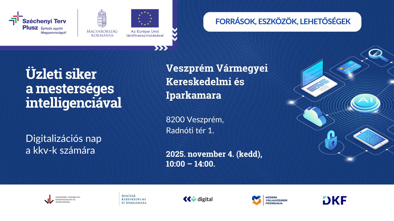 Veszprémben kerül megrendezésre a Magyar Kereskedelmi és Iparkamara szervezésében a Modern Vállalkozások Programja 2.0 rendezvény következő eseménye, fókuszban a digitalizáció és a mesterséges Intelligencia témaköreivel.