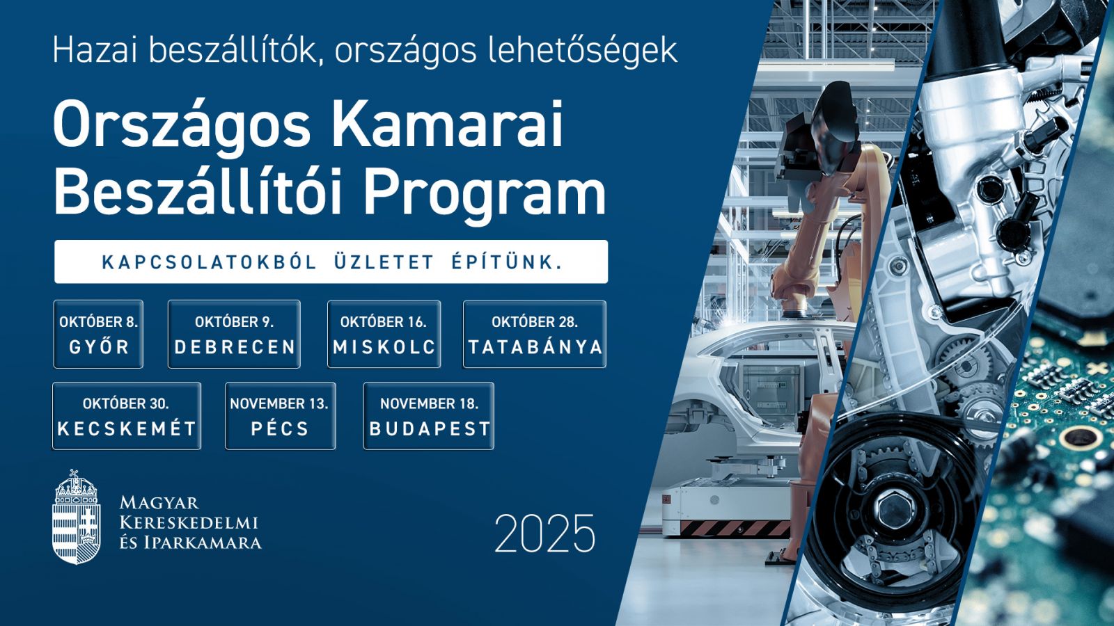 A Veszprém Vármegyei Kereskedelmi és Iparkamara, továbbá a Fejér Vármegyei és a Komárom-Esztergom Vármegyei Kereskedelmi és Iparkamara az Országos Kamarai Beszállítói Program keretében regionális beszállítói fórumot szervez Tatabányán, 2025. október 28-án.