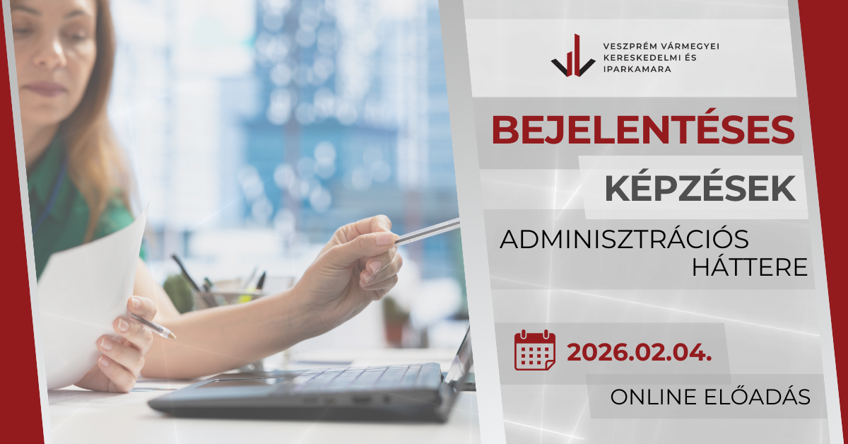 A Veszprém Vármegyei Kereskedelmi és Iparkamara az Educert Képzésmódszertani és Minőséghitelesítési Kft.-vel közösen online tájékoztatót tart felnőttképzők és leendő felnőttképzők részére a bejelentéses képzések adminisztrációs hátteréről.
